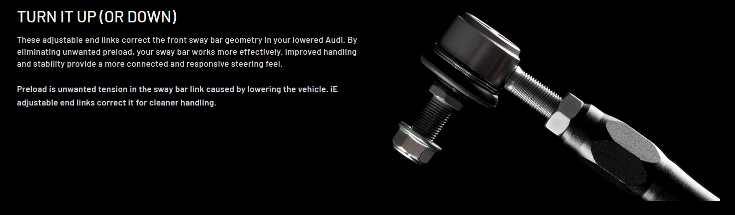 iE Adjustable Front Sway End Links For Audi B9 S4, S5, SQ5, RS5, A4, A5, & C8 RS6, RS7